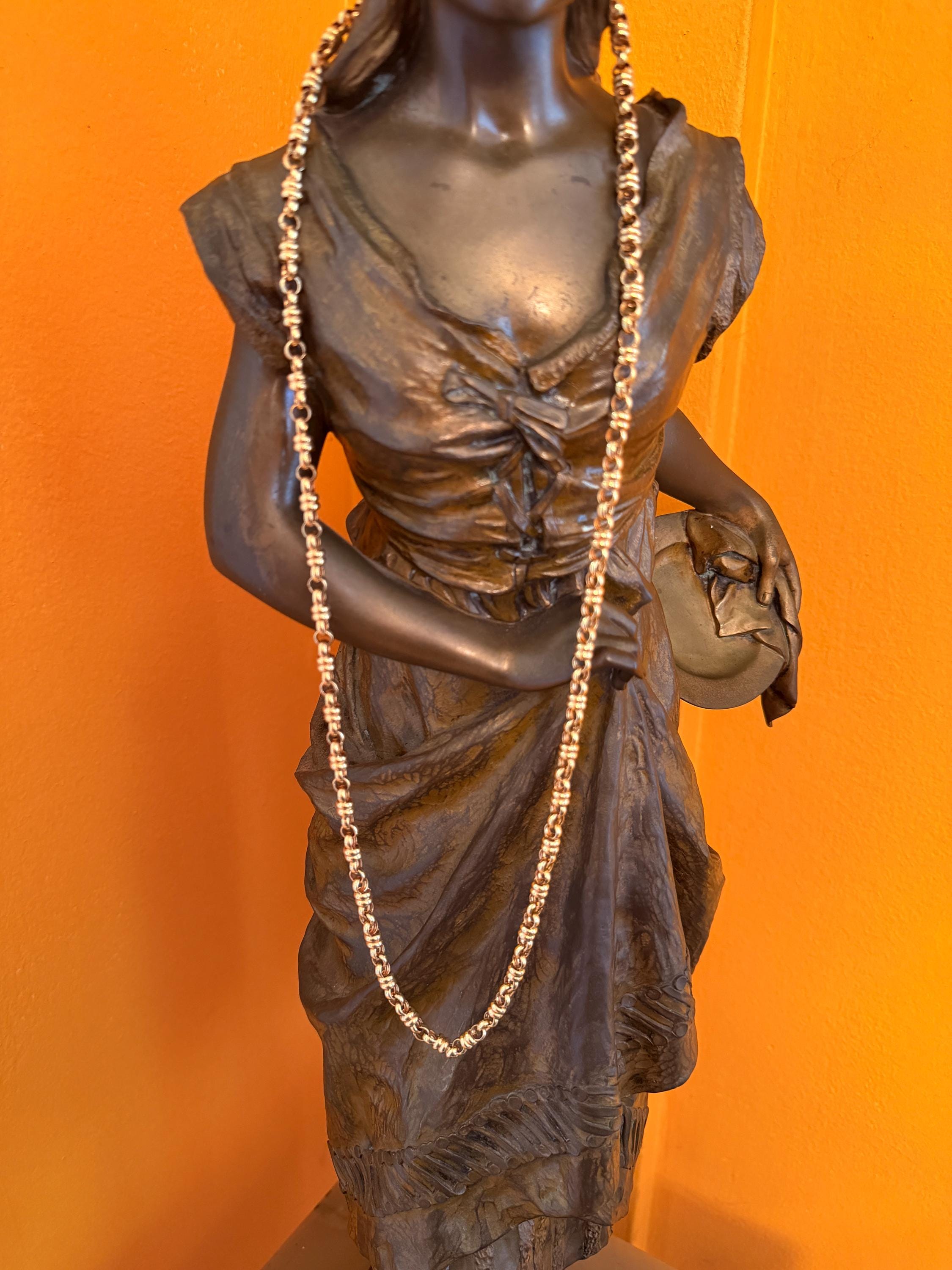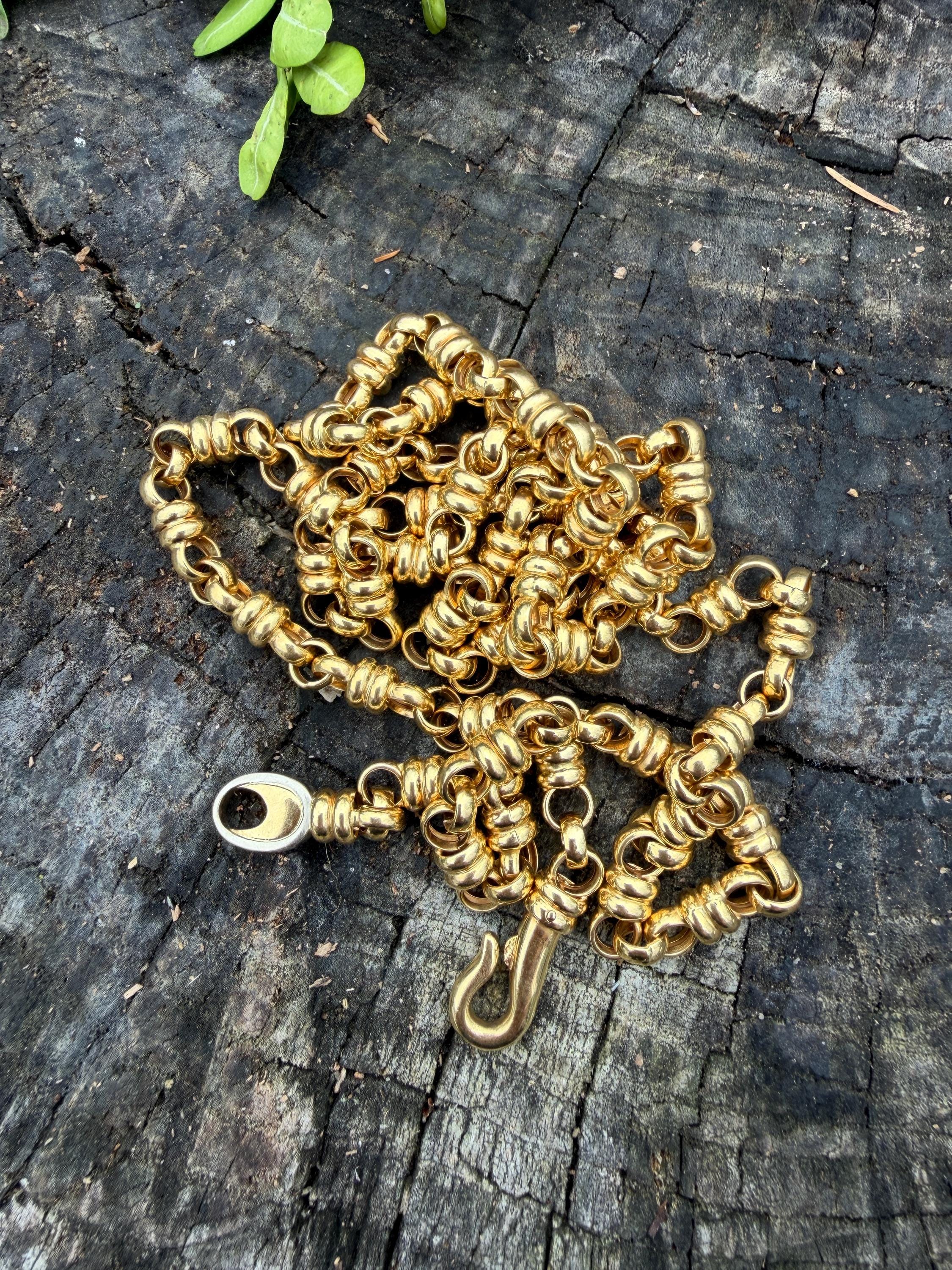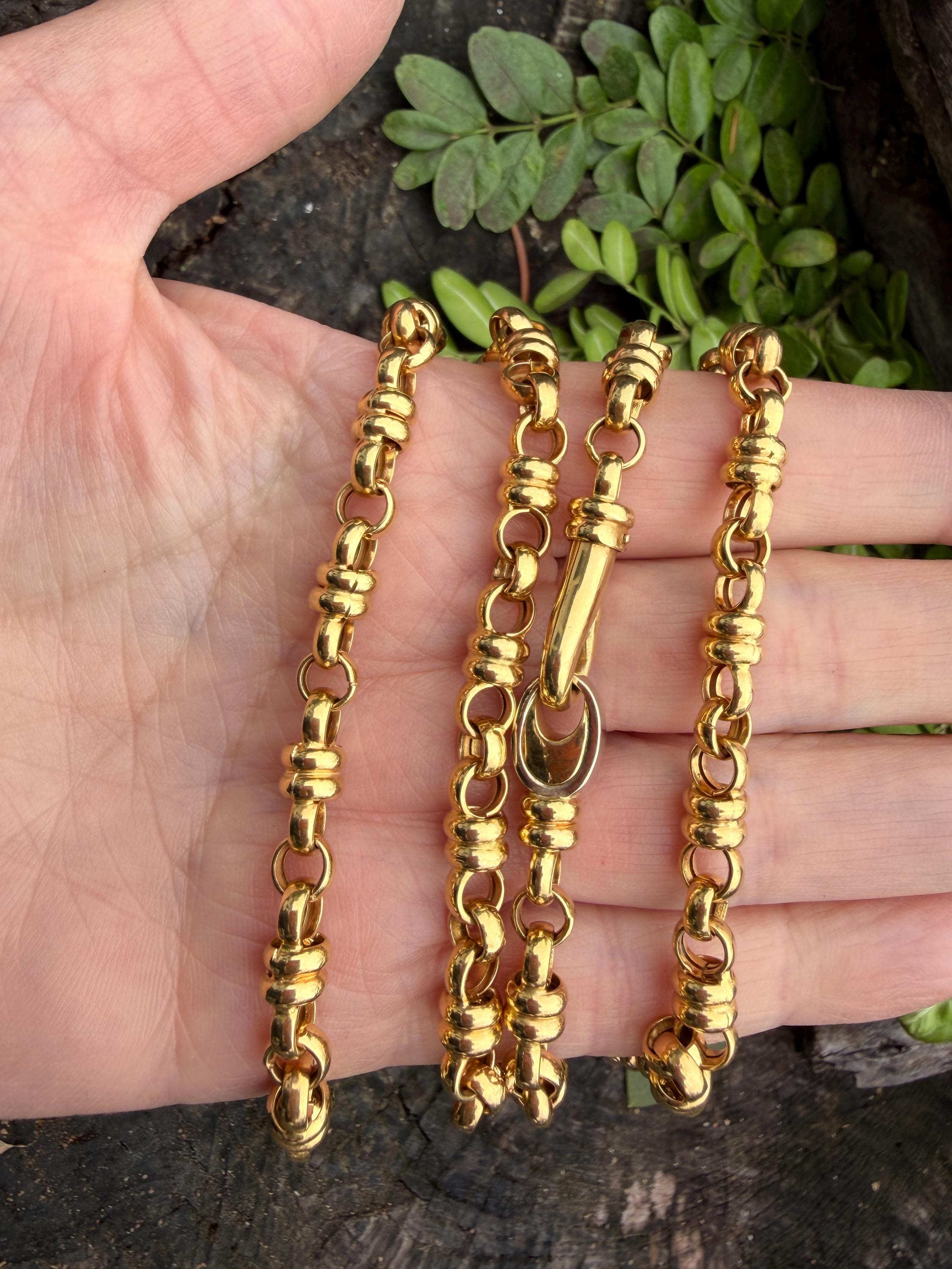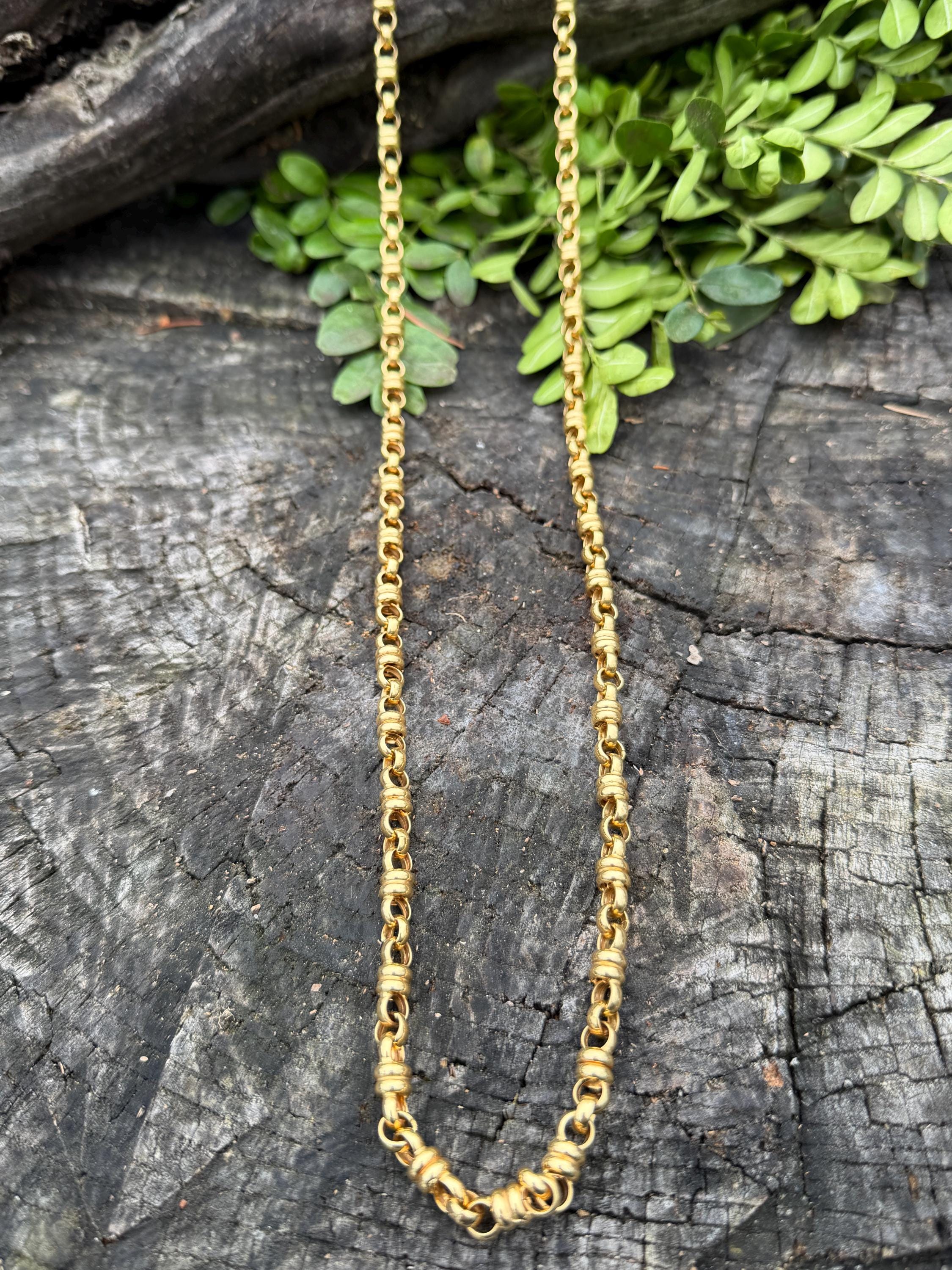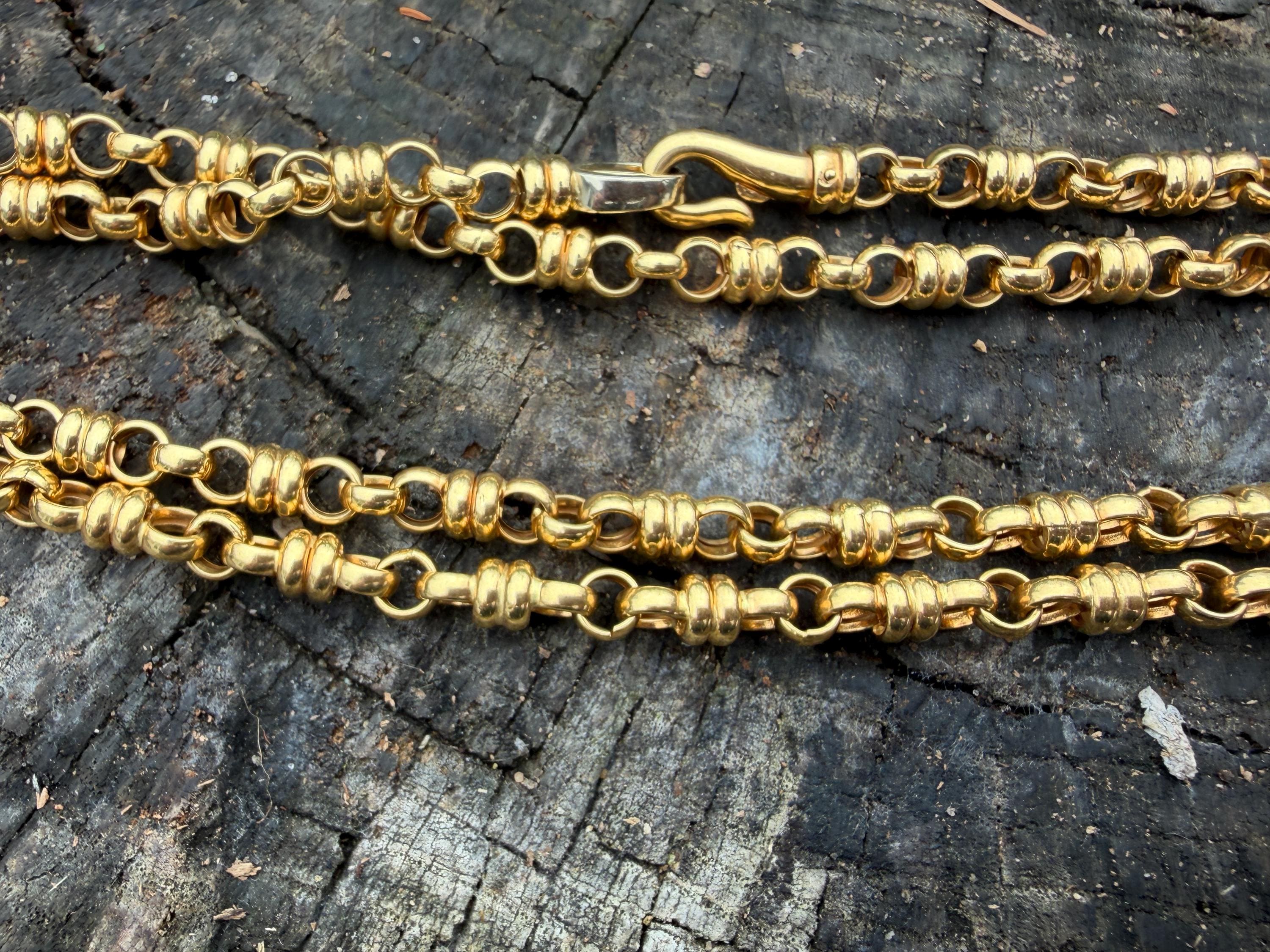 Set in 18k yellow gold this vintage lavishly striking necklace dates from the 1980's. It is an intricately bold chain woven with double circle links in luxurious gold all the way around. In between the links are a series of polished gold single circles going in the opposite direction attaching the links that add loads of character. It weighs 39.06 grams. It measures 32" and 1/4" wide. It is marked 750 (18k).